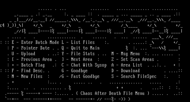 : + - Batch Flag .: C - Chat With Sysop A - Area List . ..:. . + :