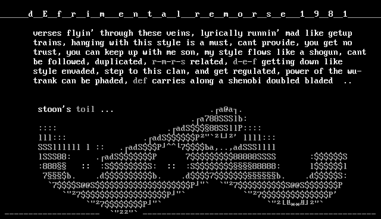be followed, duplicated, r-m-r-s related, d-e-f getting down like style envaded, step to this clan, and get regulated, power of the wu-