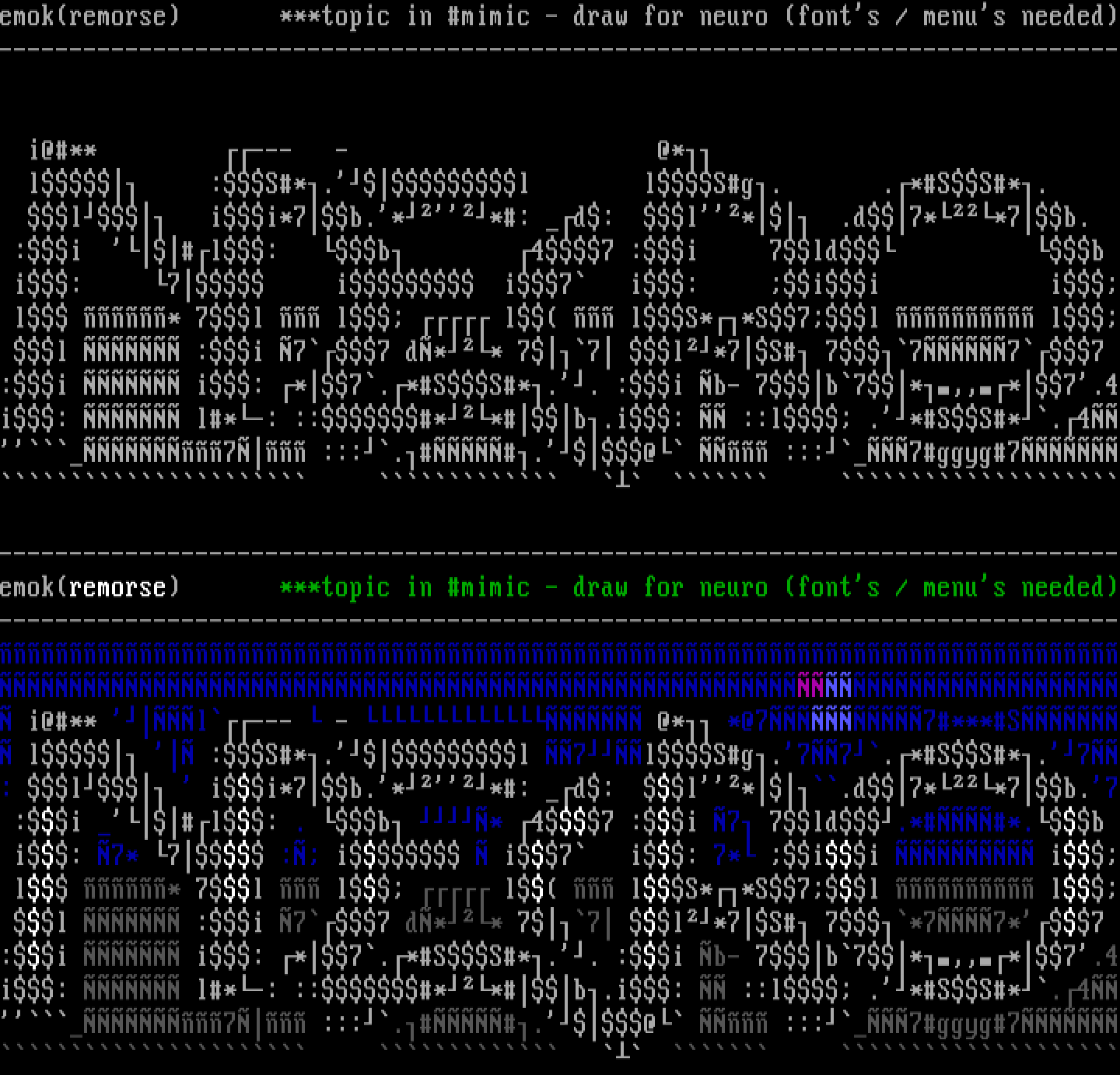 --------------------------------------------------------------------------------emokremorse ***topic in mimic - draw for neuro fonts / menus needed-------------------------------------------------------------------------------- i@** l--- - @* *@77***S l :S*.l 7lSg.77.*SS*.7: l ii*7b.**: d: l*.d7**7b.7 :i l: . b * 47 :i 7 7ld.**.b i: 7* 7 : i i7 i: 7* ii i l * 7l l l lS**S7l l l :i 77 d** 77 l*7S 7*77*7