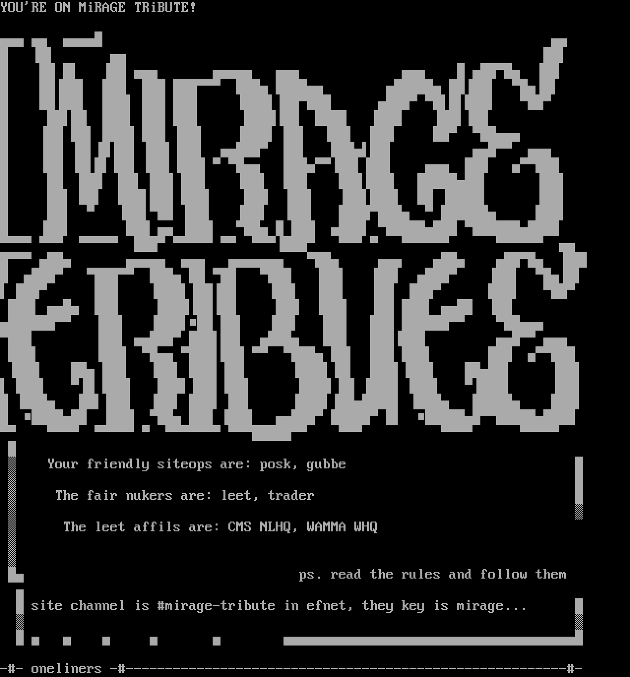 site channel is mirage-tribute in efnet, they key is mirage...