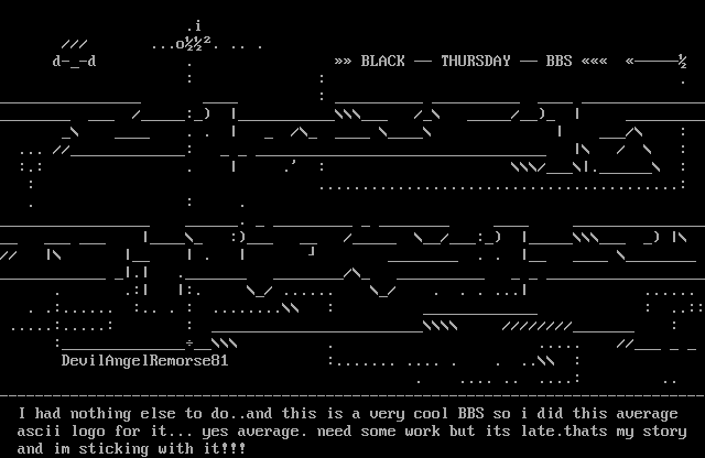 -------------------------------------------------------------------------------- I had nothing else to do..and this is a very cool BBS so i did this average
