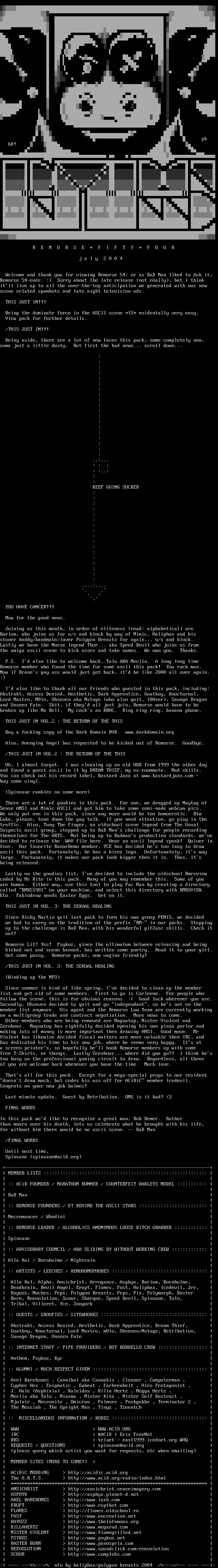 Welcome and thank you for viewing Remorse 54 or as RaD Man liked to dub it,