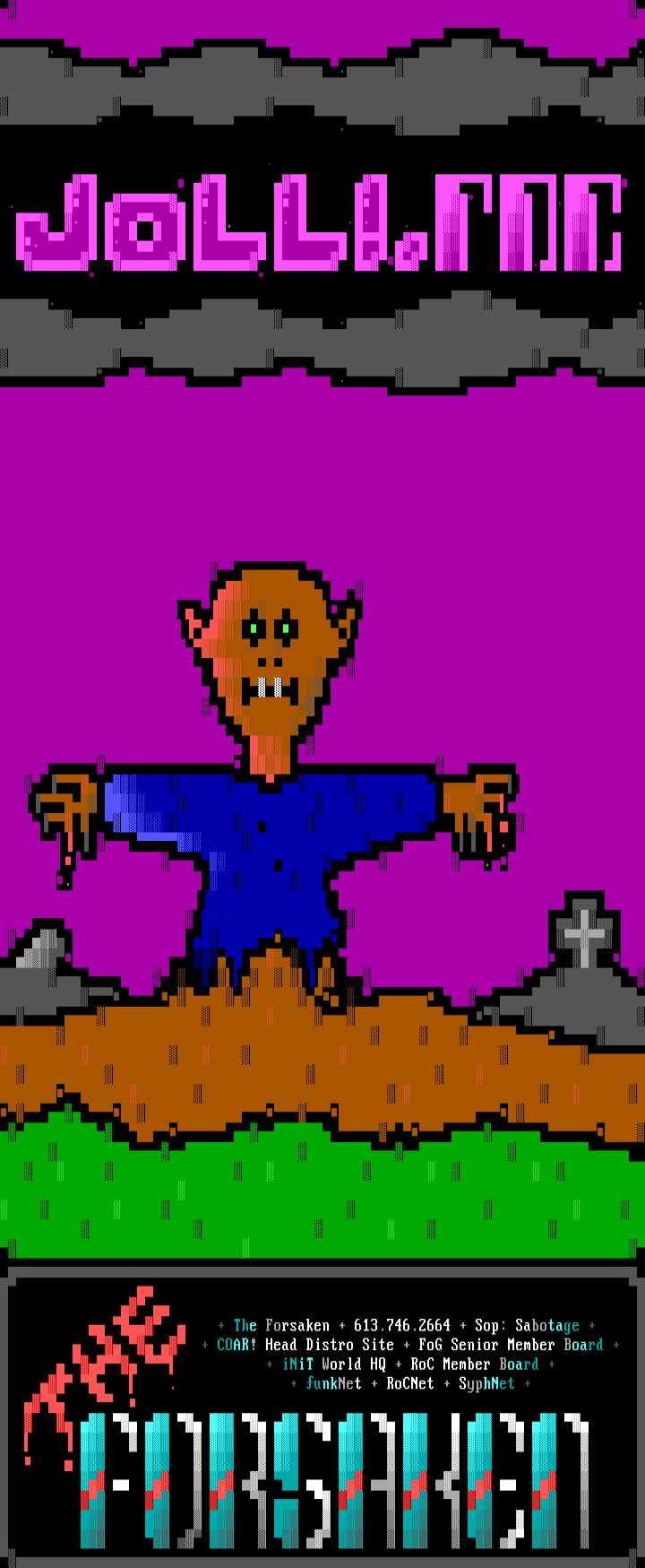 + The Forsaken + 613.746.2664 + Sop: Sabotage + + COAR! Head Distro Site + FoG Senior Member Board + + iNiT World HQ + RoC Member Board + . + unkNet + RoCNet + SyphNet +