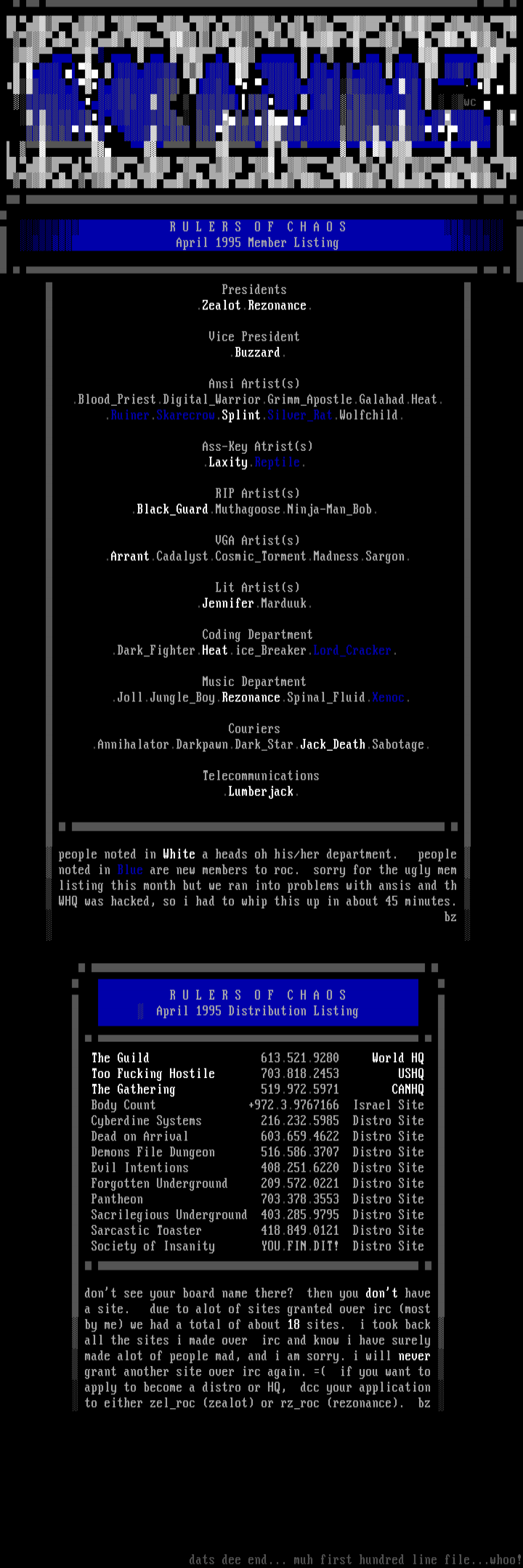 R U L E R S O F C H A O S April 1995 Member Listing Presidents