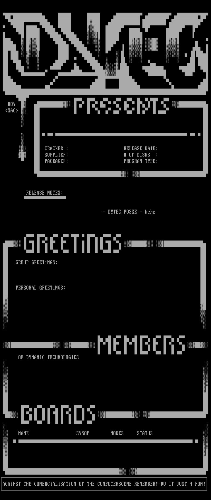 AGAiNST THE COMERCiALiSATiON OF THE COMPUTERSCENEREMEMBER!DO IT JUST 4 FUN!