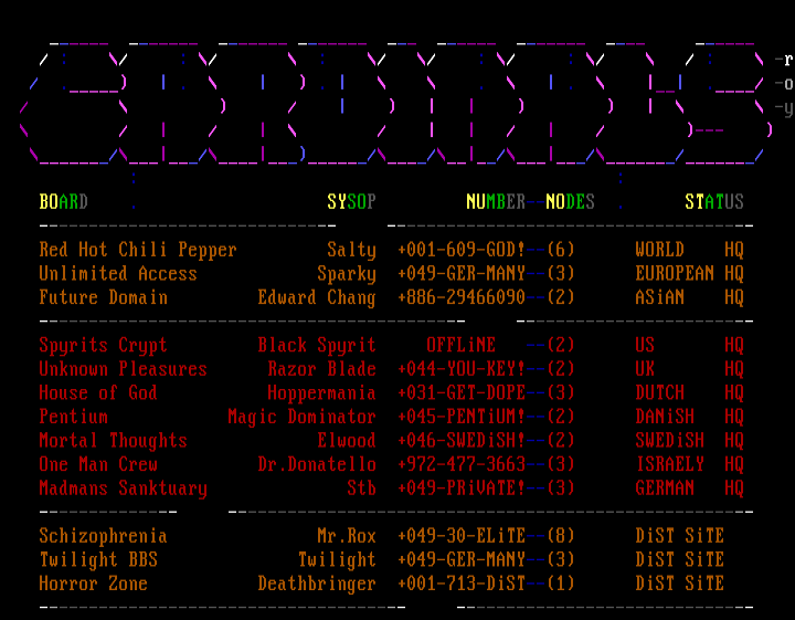 BOARD . SYSOP NUMBER--NODES . STATUS
