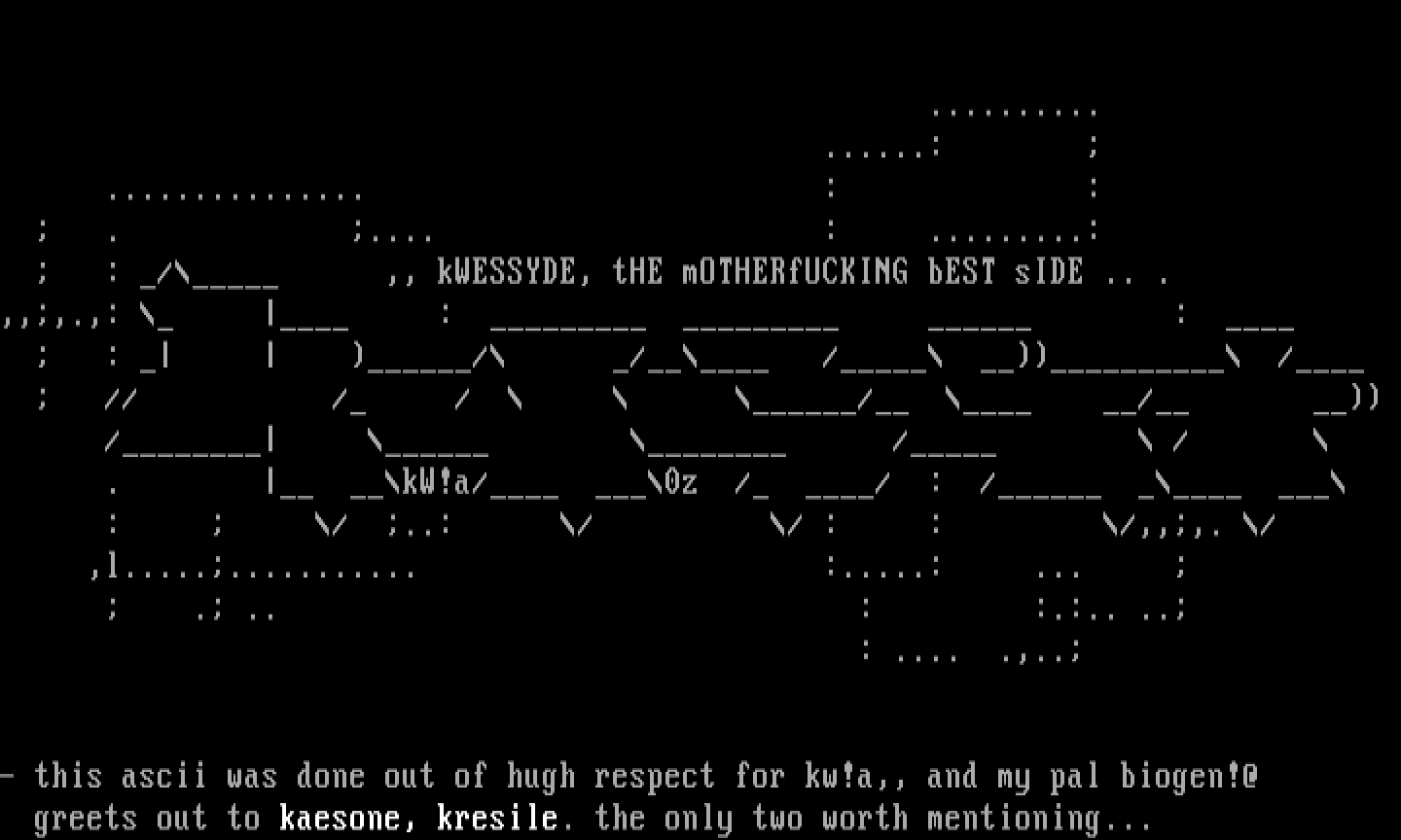- this ascii was done out of hugh respect for kw!a,, and my pal biogen!@