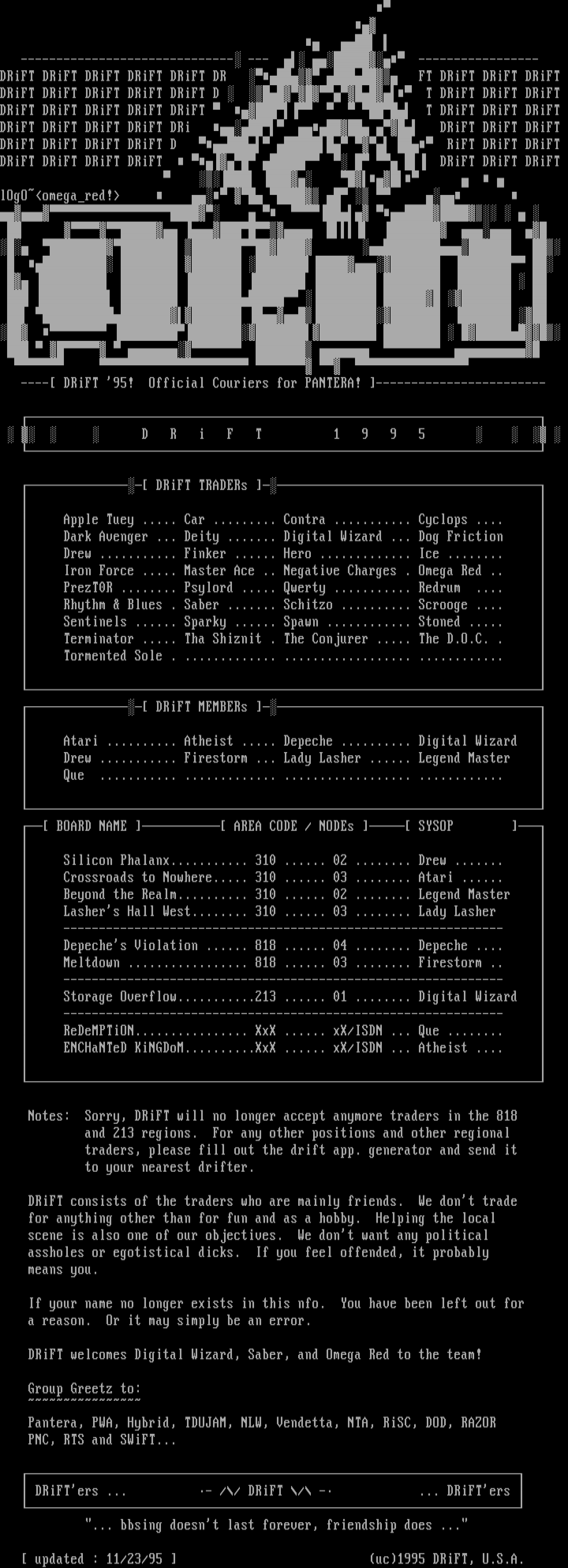 updated : 11/23/95 uc1995 DRiFT, U.S.A.