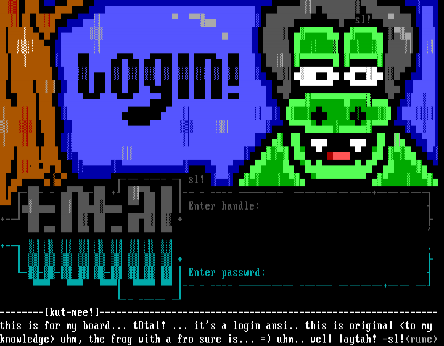--------kut-mee!------------------------------------------------------------- this is for my board... tOtal! ... its a login ansi.. this is original to my