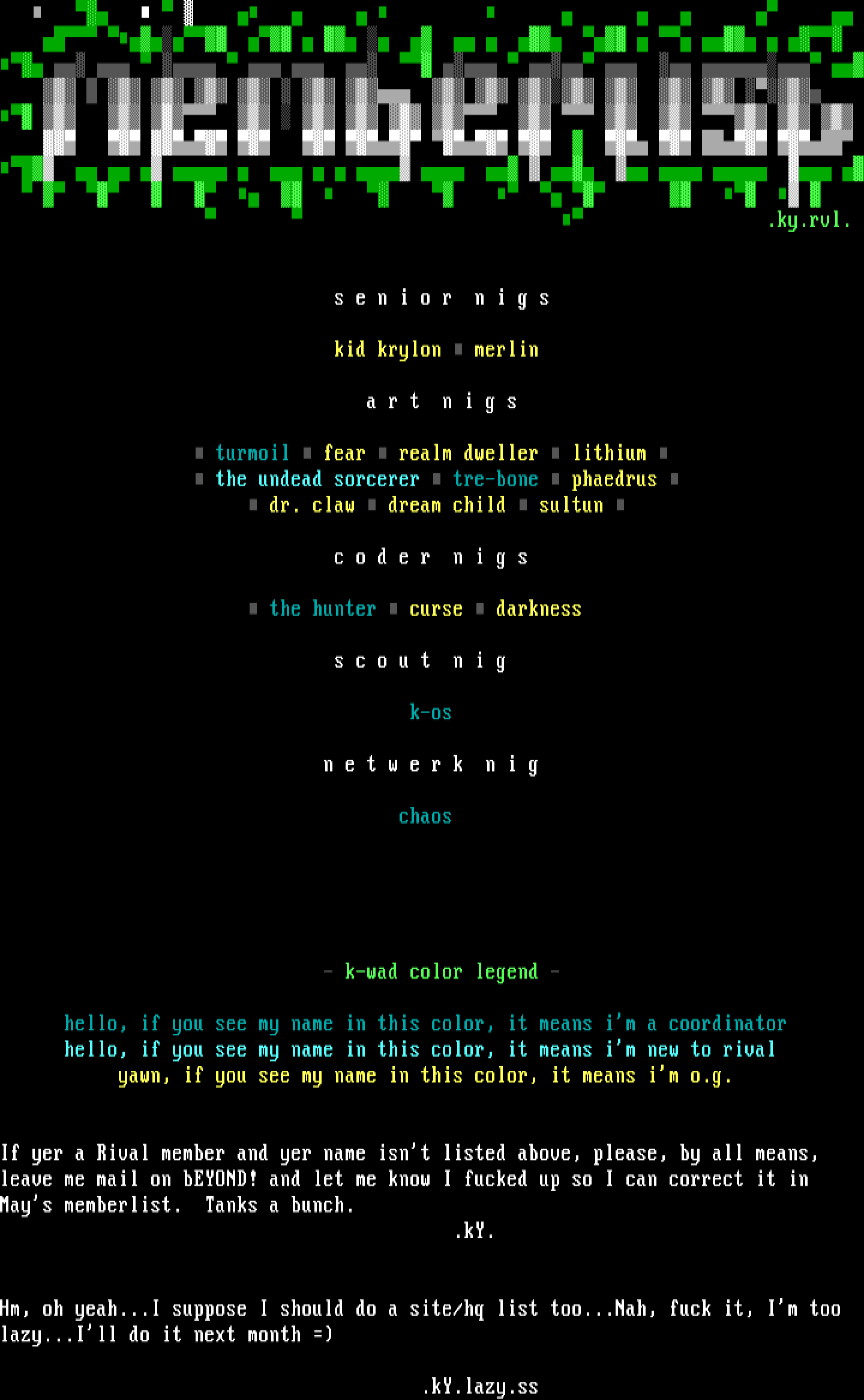 If yer a Rival member and yer name isnt listed above, please, by all means,
