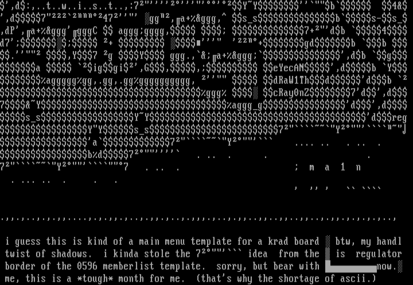 me, this is a *tough* month for me. thats why the shortage of ascii.