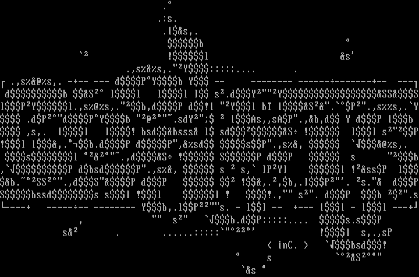 sl .,dS ! SP dP s b,P dbsdP.,s, s s, lPYl l !ssP lb.SS.,dSP dP !,.,b,.lP. s. dPSbssds sl !l l ! !., s. dP b .s----+ ------- -------- Yb,.lPs. - ll -- +--- ll - ll ---+ , s b.dP:::::.... s.sP