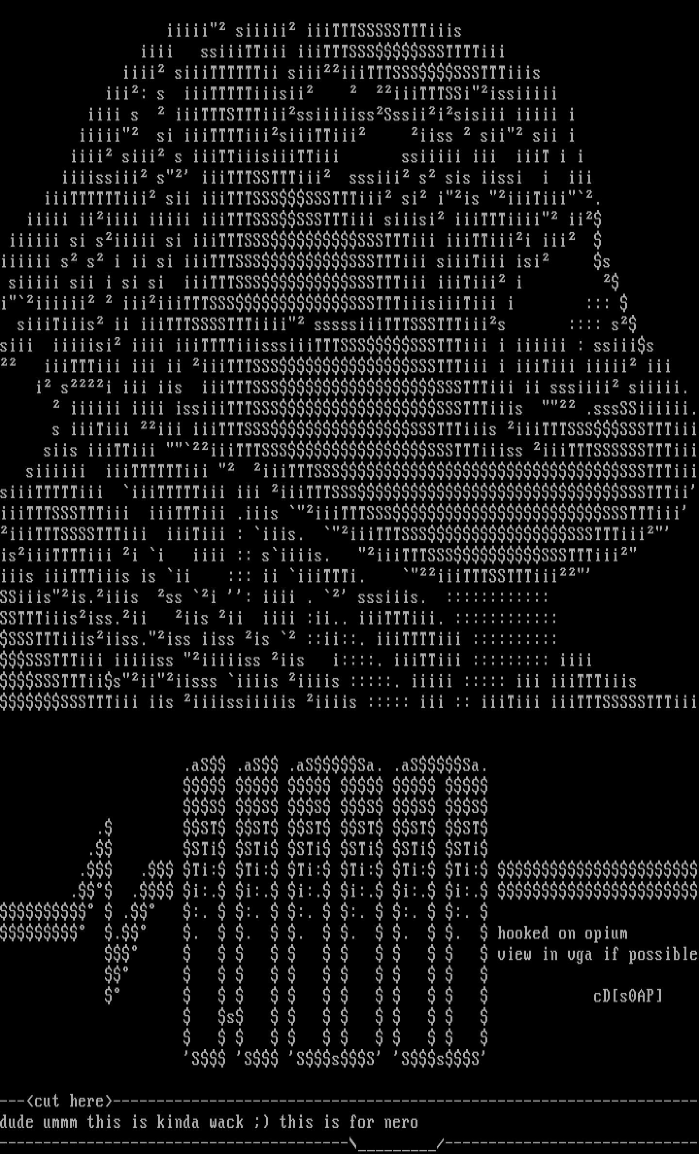 ---cut here-------------------------------------------------------------------dude ummm this is kinda wack this is for nero
