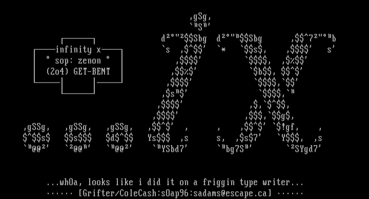 Grifter/ColeCash:sOap96:sadams@escape.ca