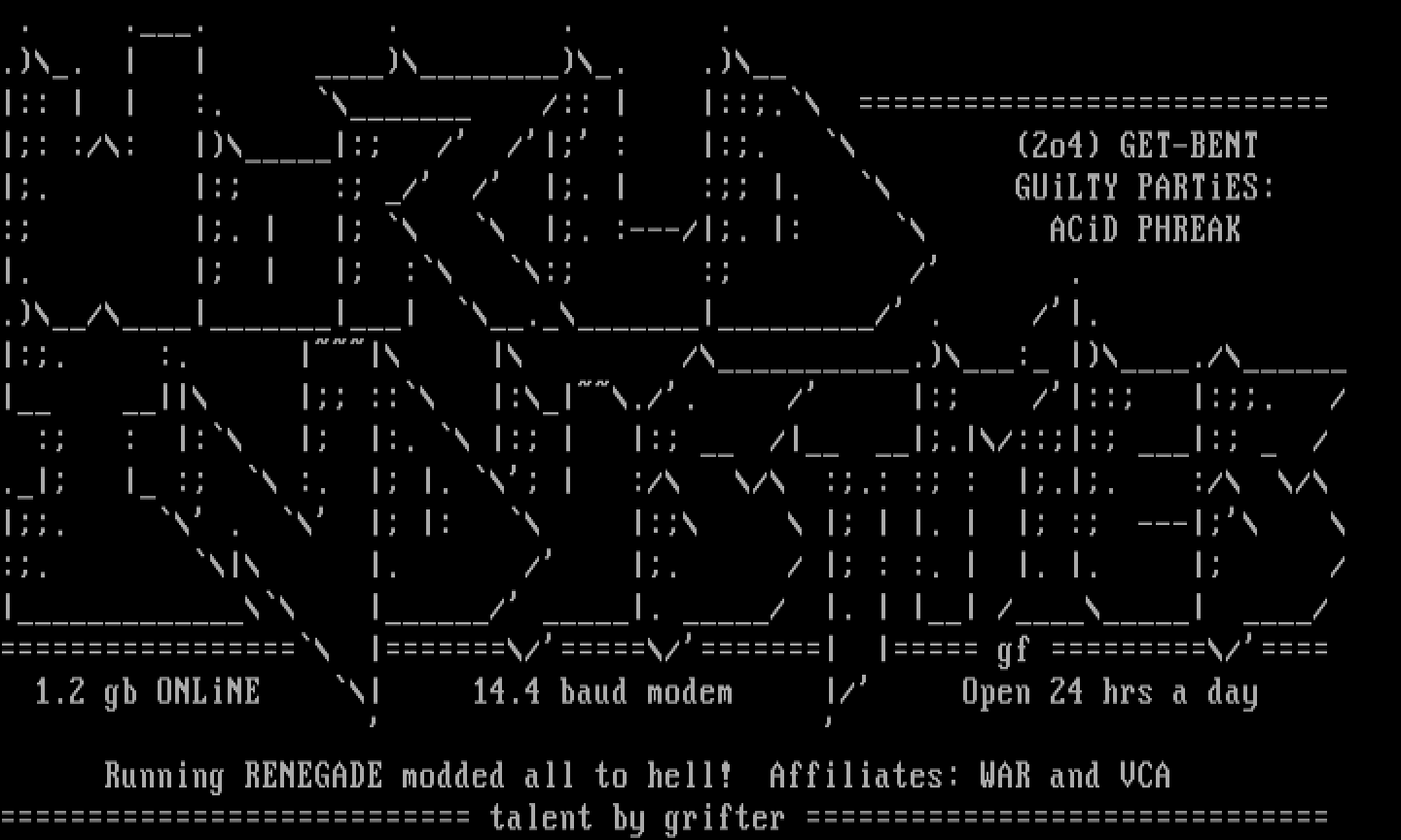1.2 gb ONLiNE 14.4 baud modem / Open 24 hrs a day