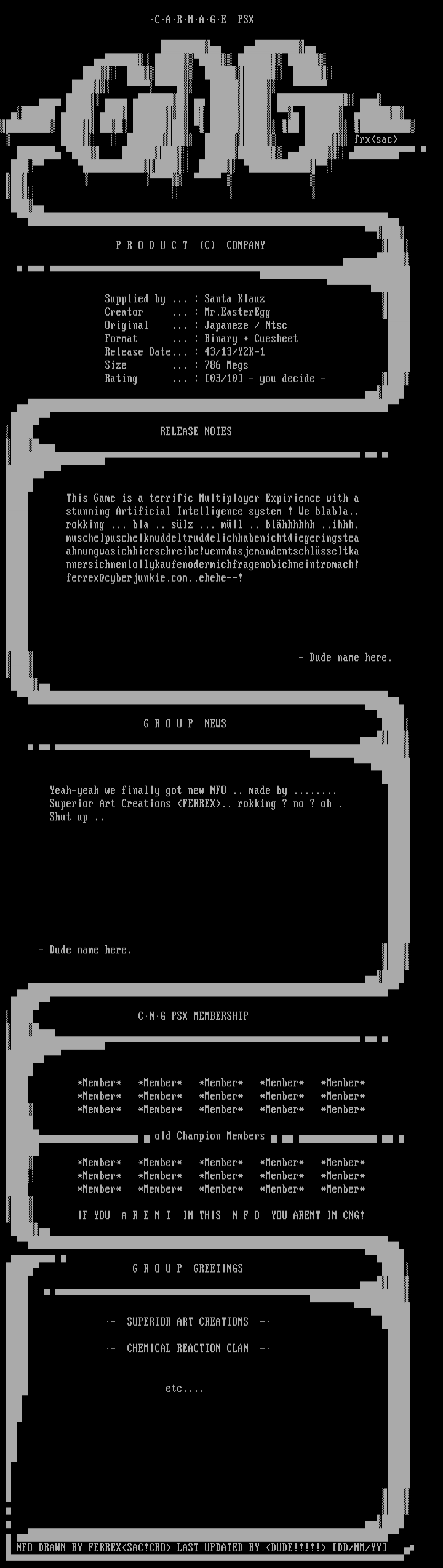 NFO DRAWN BY FERREXSAC!CRO LAST UPDATED BY DUDE!!!!! DD/MM/YY