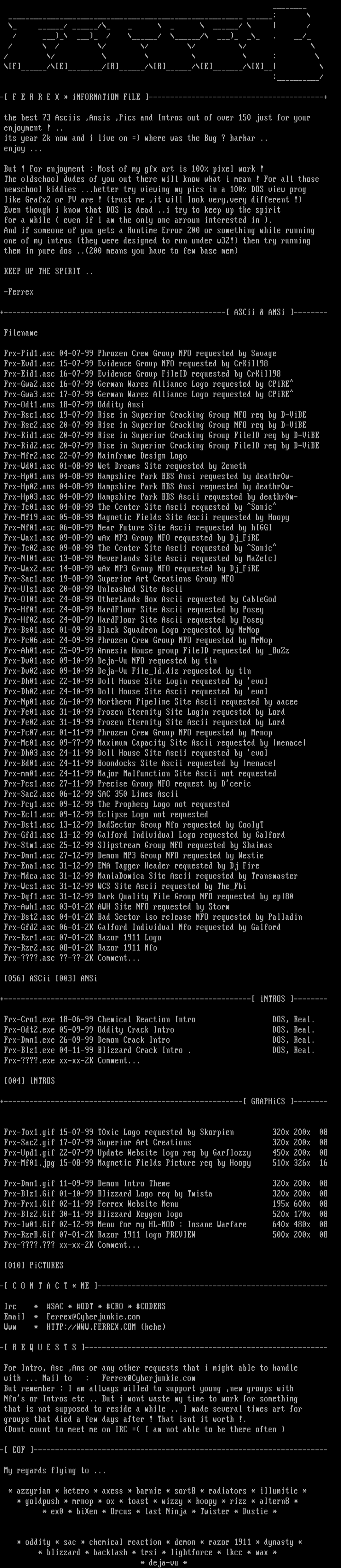 - F E R R E X * iNFORMATiON FiLE -----------------------------------------+