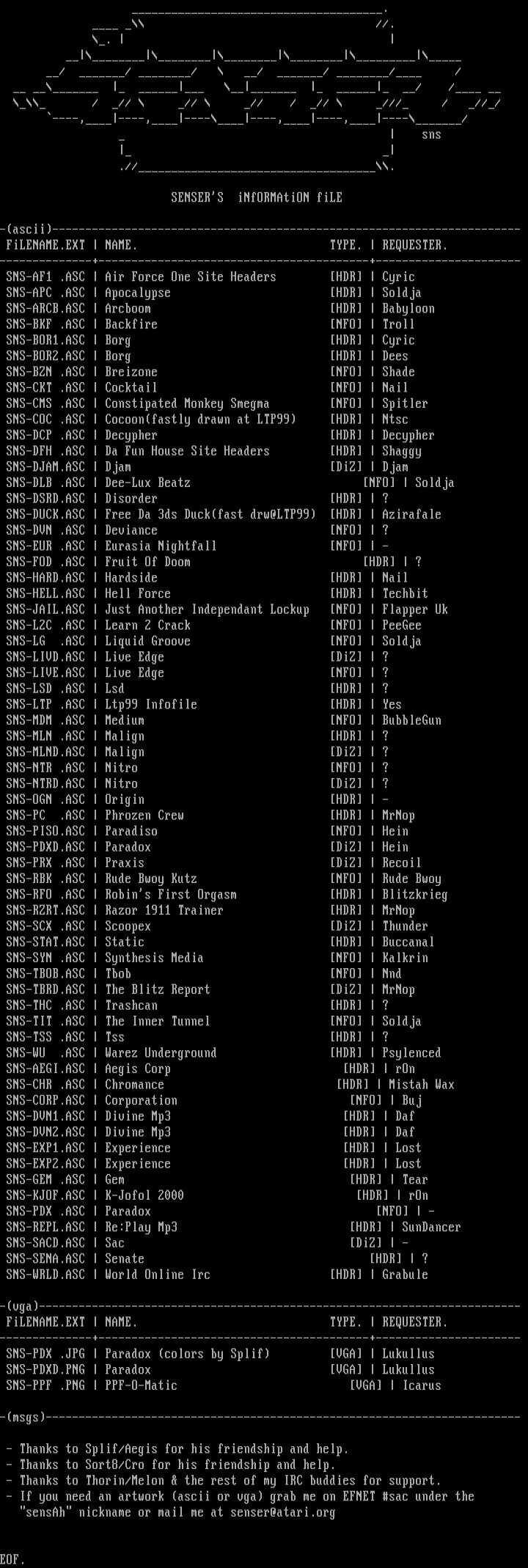 - If you need an artwork ascii or vga grab me on EFNET sac under the