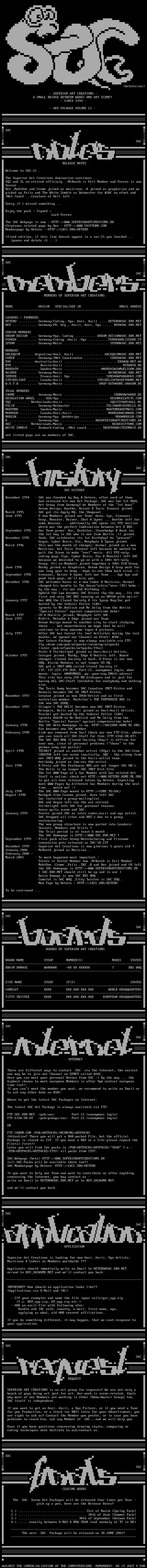 January 1999 Ferrex joined SAC as intro coder/ascii and vga artist.