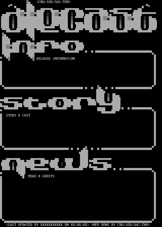 LAST UPDATED BY XXXXXXXXXXX ON XX/XX/XX NFO DONE BY CRU/1OO/SAC/TXN
