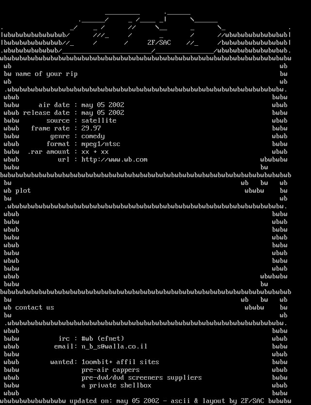 wbwbwbwbwbwbwbwbw updated on: may 05 2002 - ascii layout by 2F/SAC bwbwbw