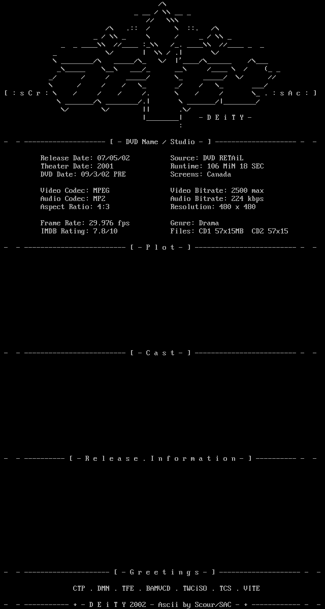 - - ----------- + - D E i T Y 2002 - Ascii by Scour/SAC - + ------------ - -