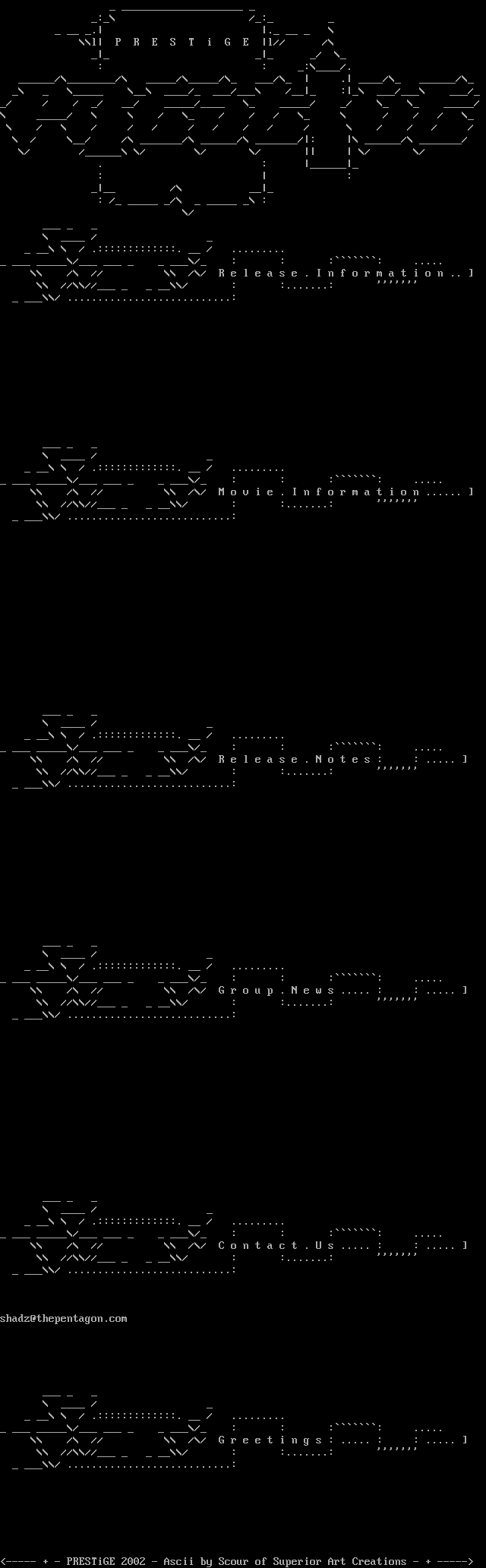 ----- + - PRESTiGE 2002 - Ascii by Scour of Superior Art Creations - + -----