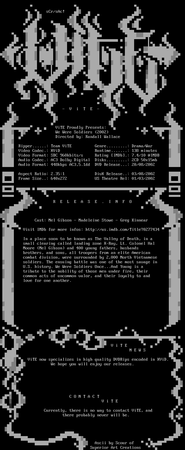 ViTE now specializes in high quality DVDRips encoded in XViD.