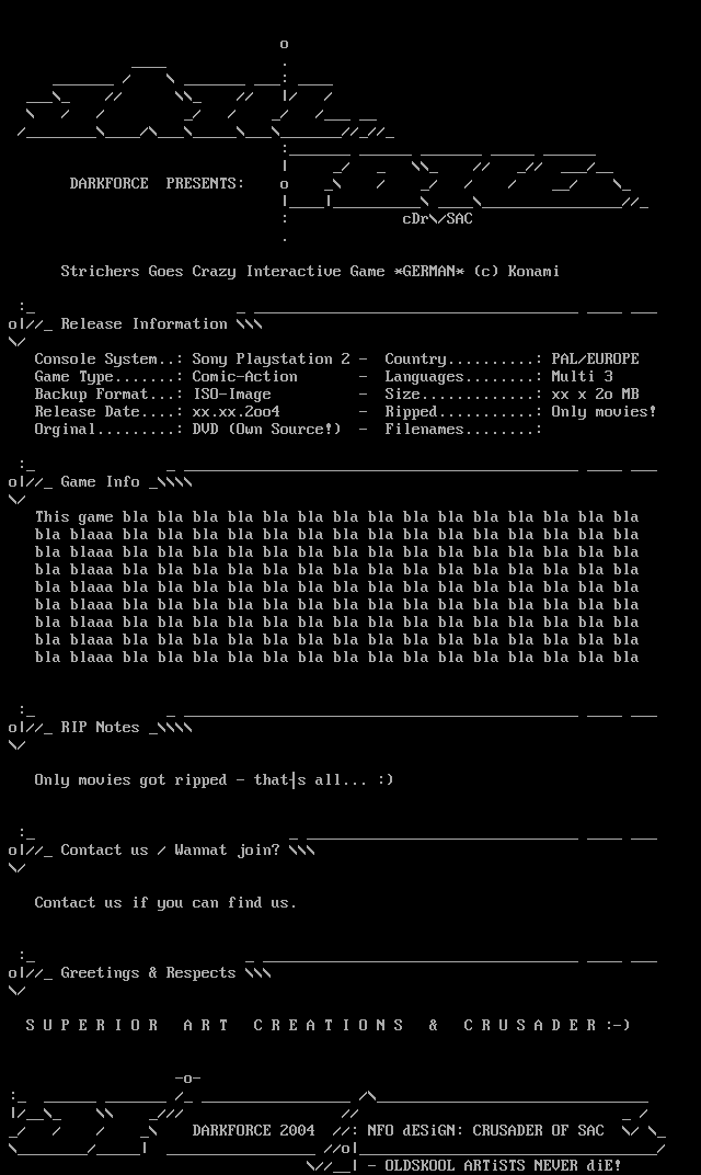 / / / DARKFORCE 2004 //: NFO dESiGN: CRUSADER OF SAC /