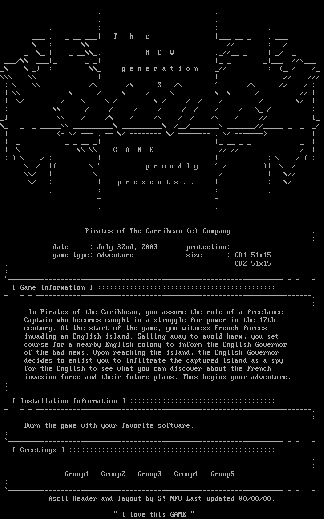 Ascii Header and layout by S! NFO Last updated 00/00/00.