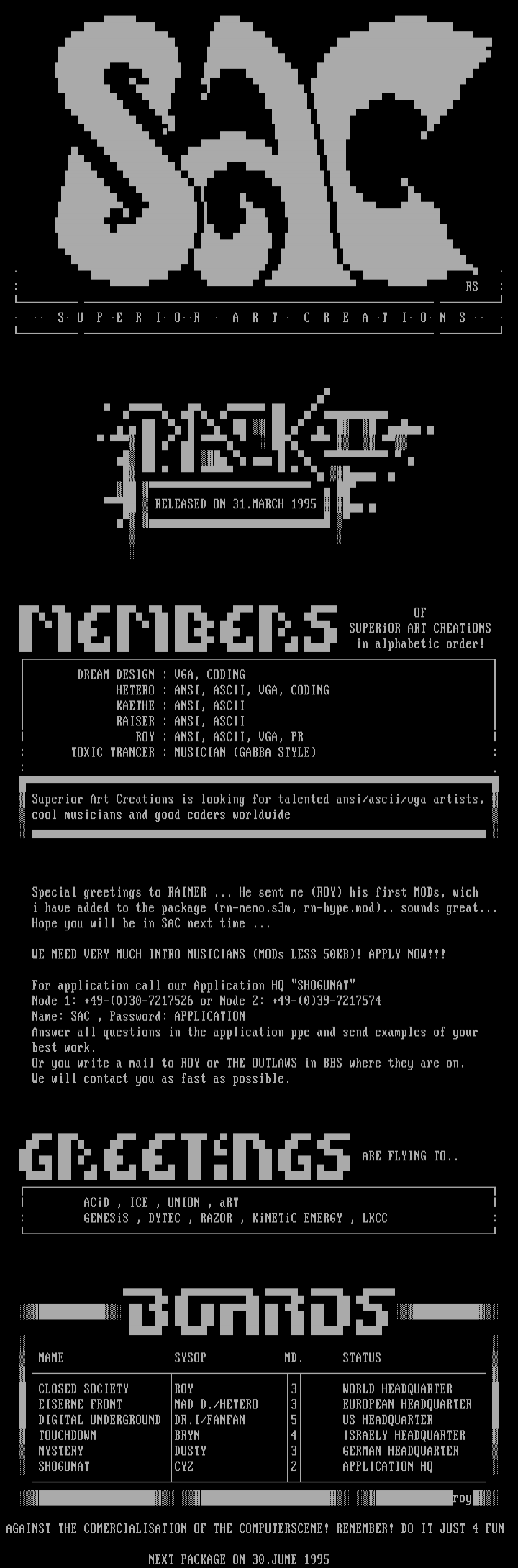 Superior Art Creations is looking for talented ansi/ascii/vga artists,