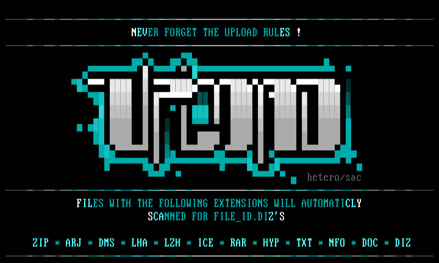 ZIP * ARJ * DMS * LHA * LZH * ICE * RAR * HYP * TXT * NFO * DOC * DIZ