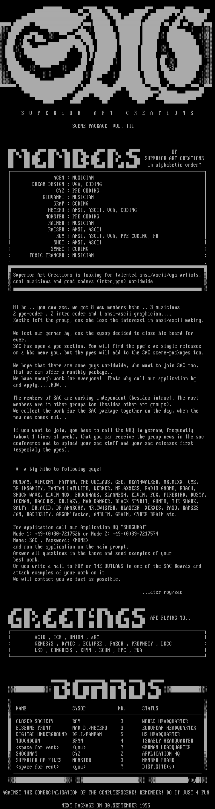 Superior Art Creations is looking for talented ansi/ascii/vga artists,