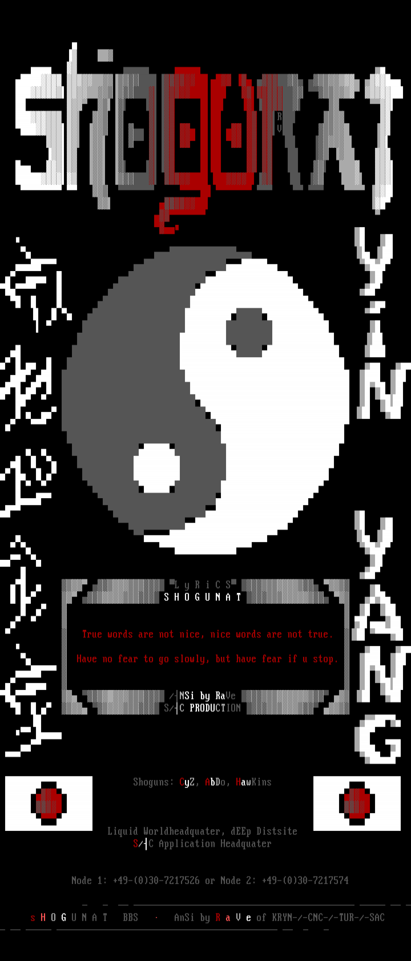 s H O G U N A T BBS AnSi by R a V e of KRYN-/-CNC-/-TUR-/-SAC