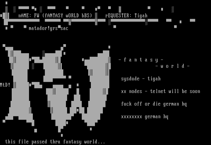 nAME: FW fANTASY wORLD bBS rEQUESTER: Tigah