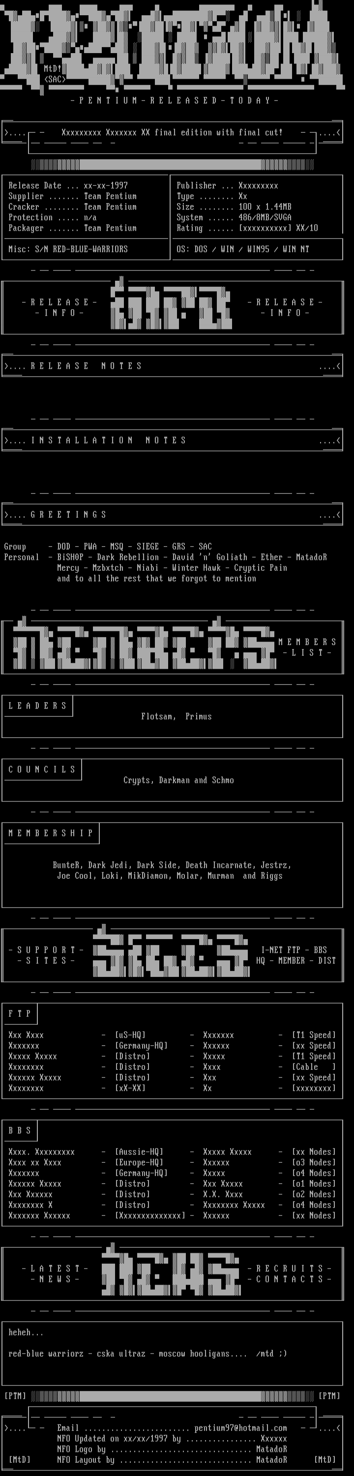 Cracker ........ Team Pentium Size ........ 1OO x 1.44MB
