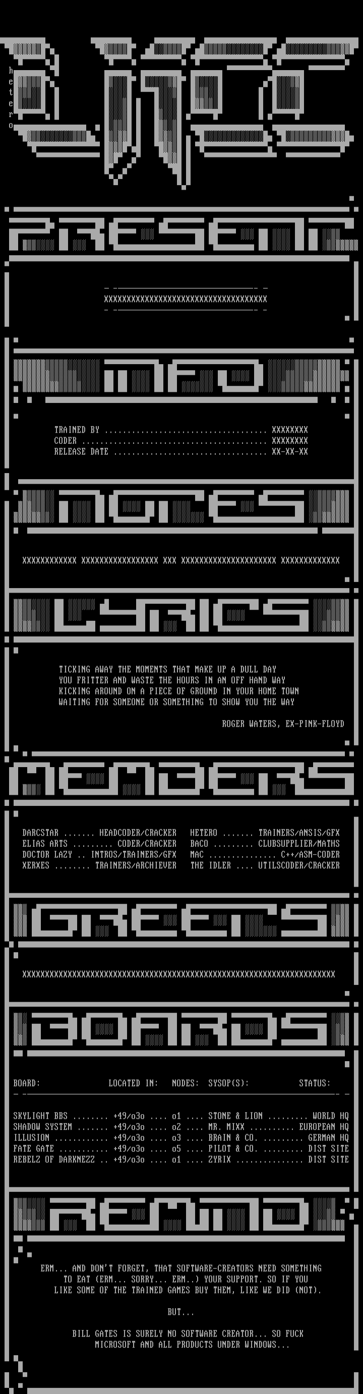 DOCTOR LAZY .. INTROS/TRAINERS/GFX MAC ............... C++/ASM-CODER