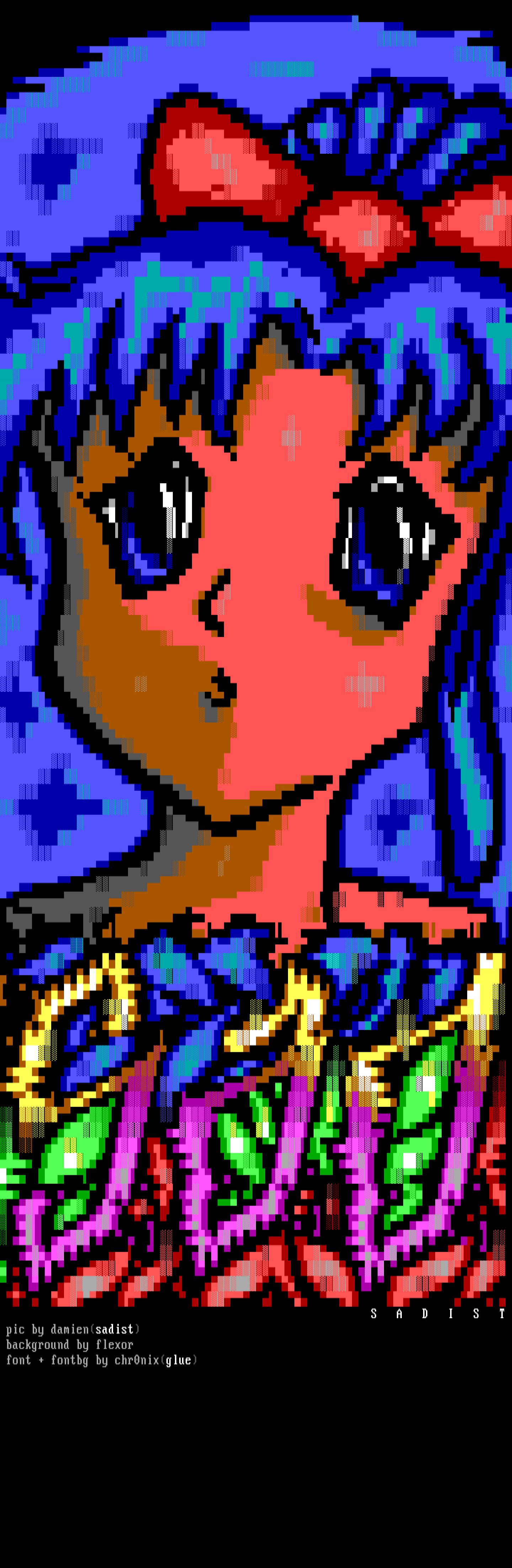 S A D I S T pic by damiensadist background by flexor font + fontbg by chr0nixglue