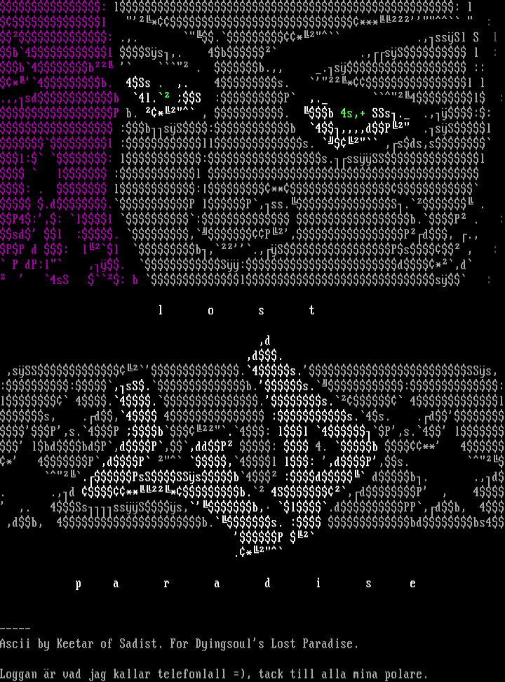 Ascii by Keetar of Sadist. For Dyingsouls Lost Paradise.