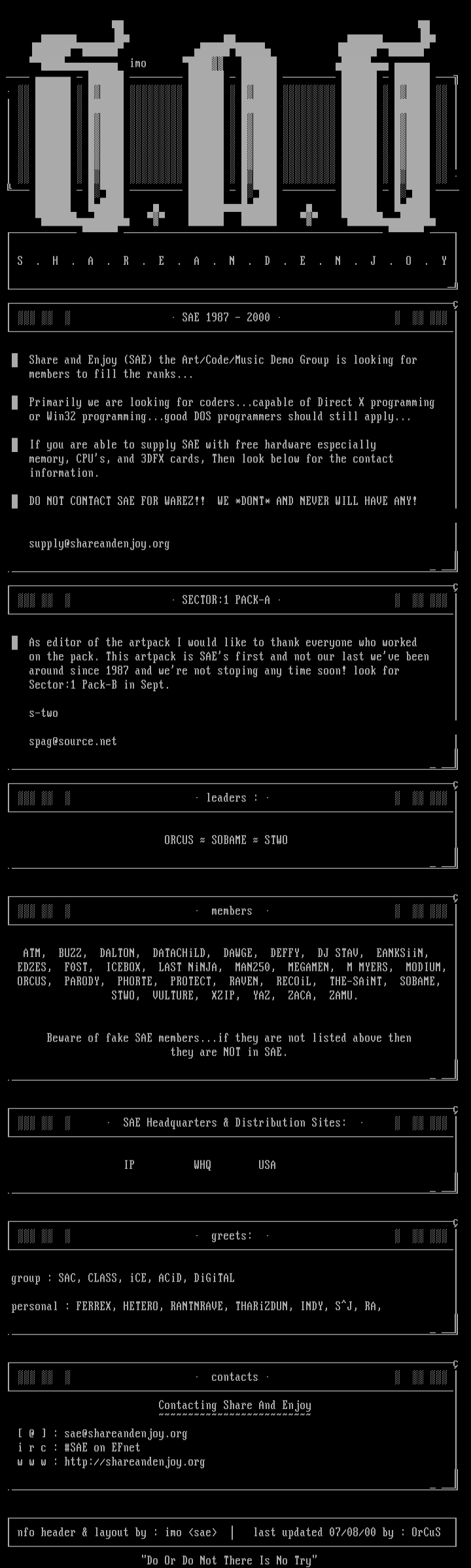 Share and Enjoy SAE the Art/Code/Music Demo Group is looking for