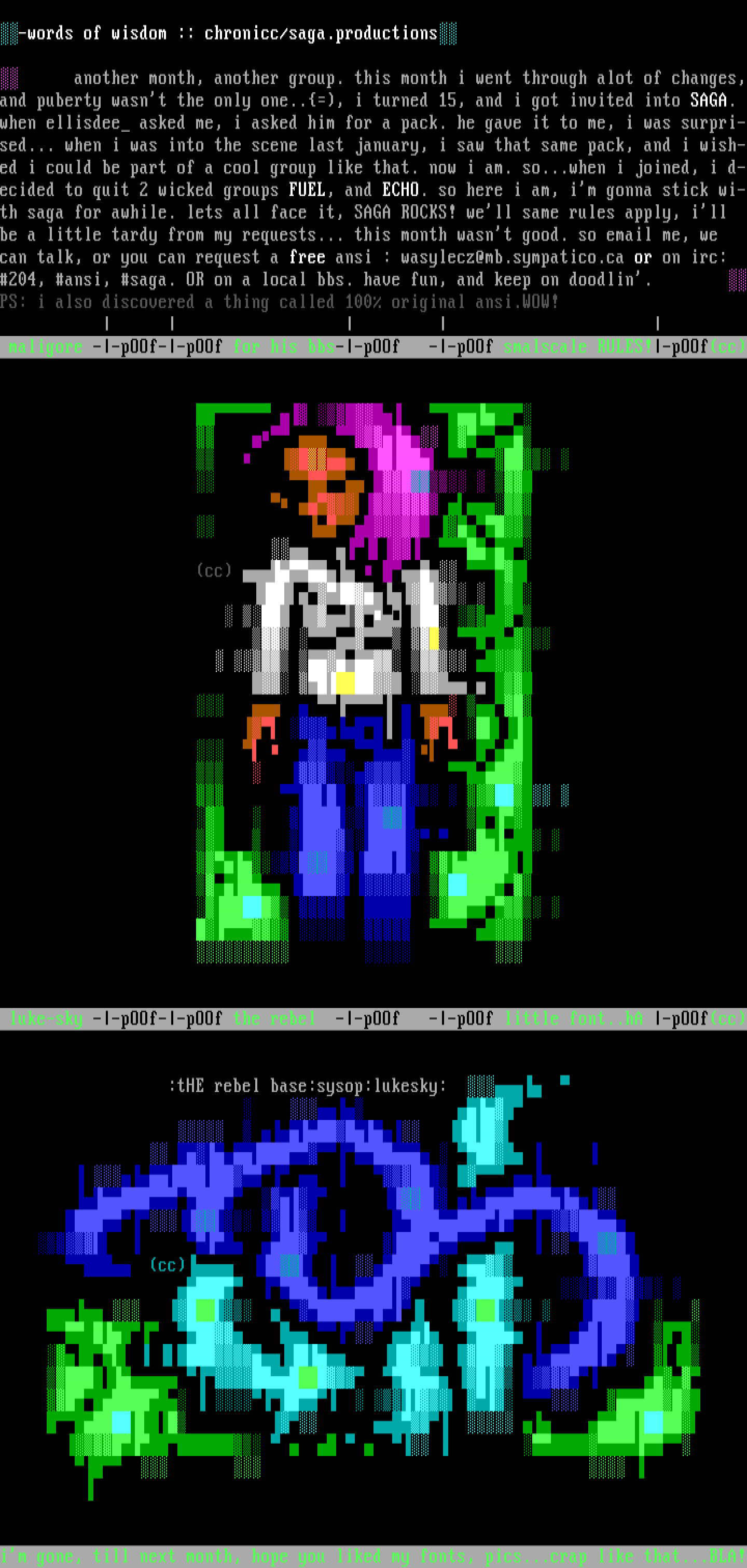 204, ansi, saga. OR on a local bbs. have fun, and keep on doodlin. PS: i also discovered a thing called 100 original ansi.WOW!