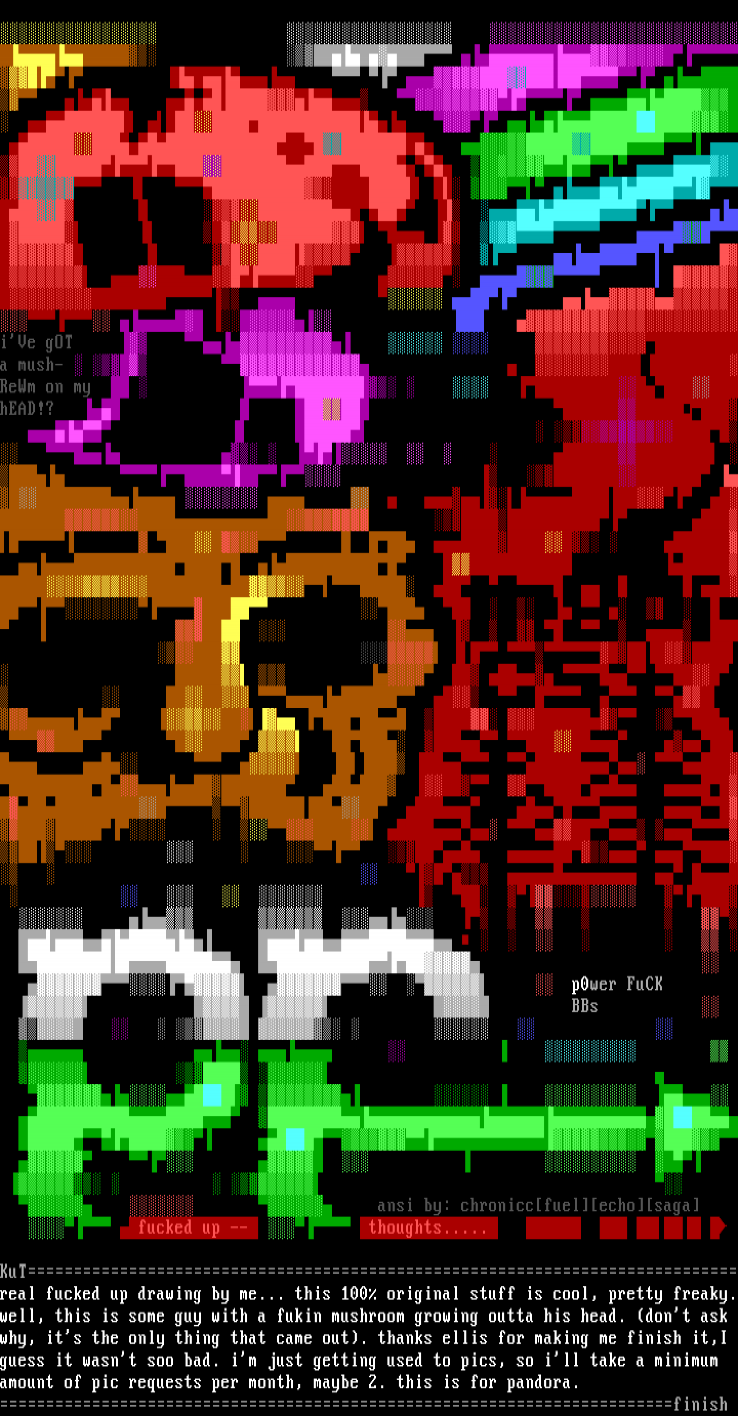 KuTreal fucked up drawing by me... this 100 original stuff is cool, pretty freaky.well, this is some guy with a fukin mushroom growing outta his head. dont ask