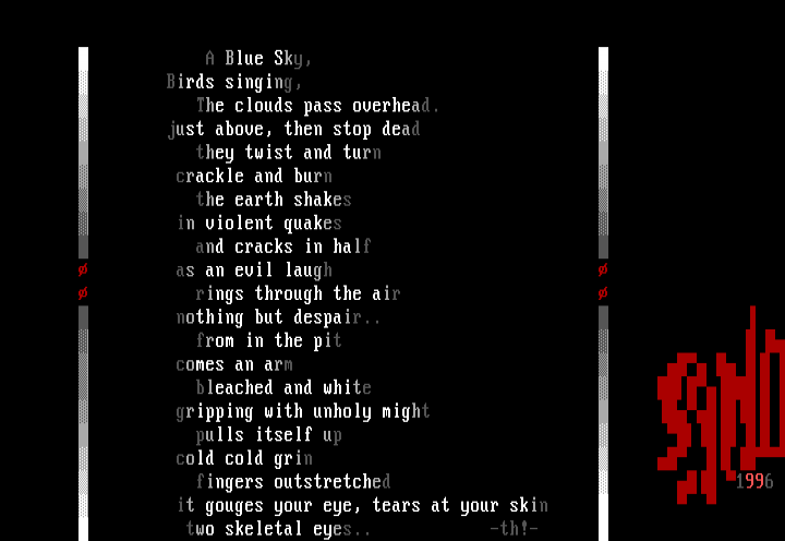 from in the pit comes an arm bleached and white gripping with unholy might pulls itself up cold cold grin fingers outstretched 1996