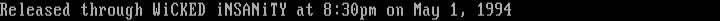 Released through WiCKED iNSANiTY at 8:30pm on May 1, 1994