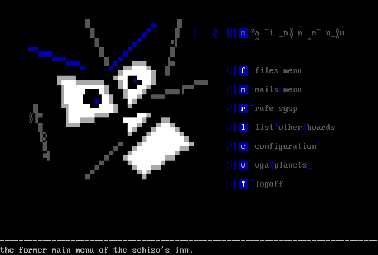 -------------the former main menu of the schizos inn.