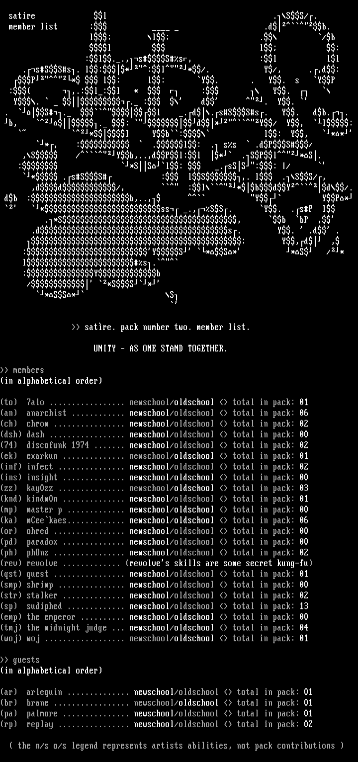 satre. pack number two. member list.