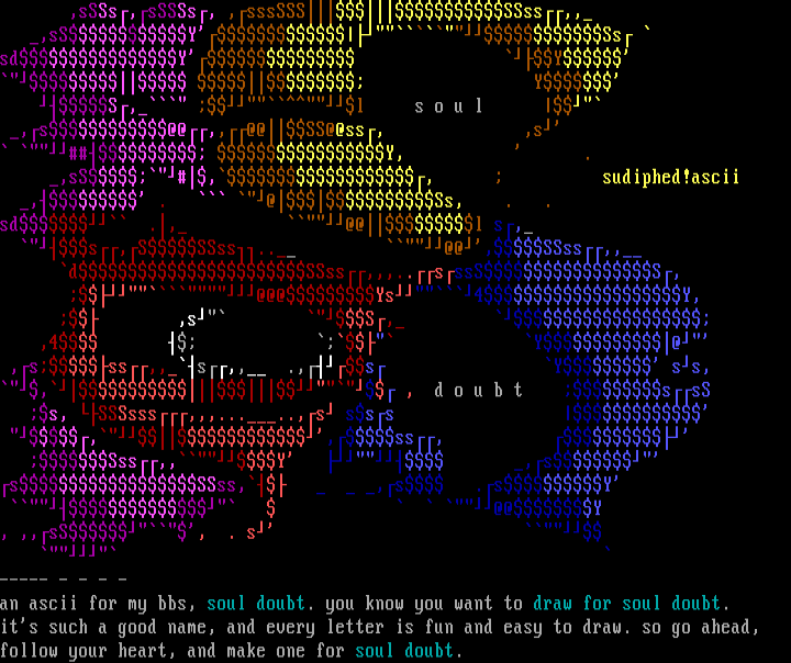 an ascii for my bbs, soul doubt. you know you want to draw for soul doubt.