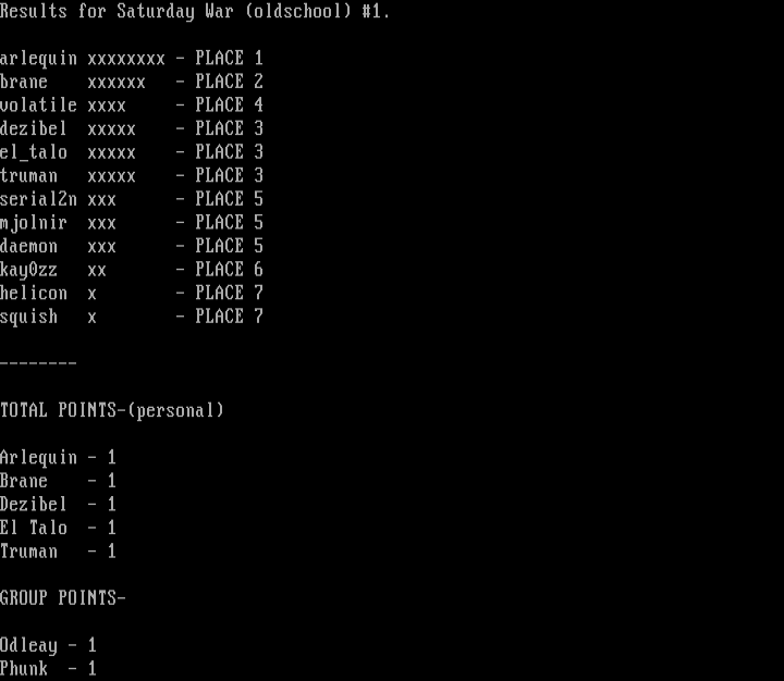 Results for Saturday War oldschool 1.