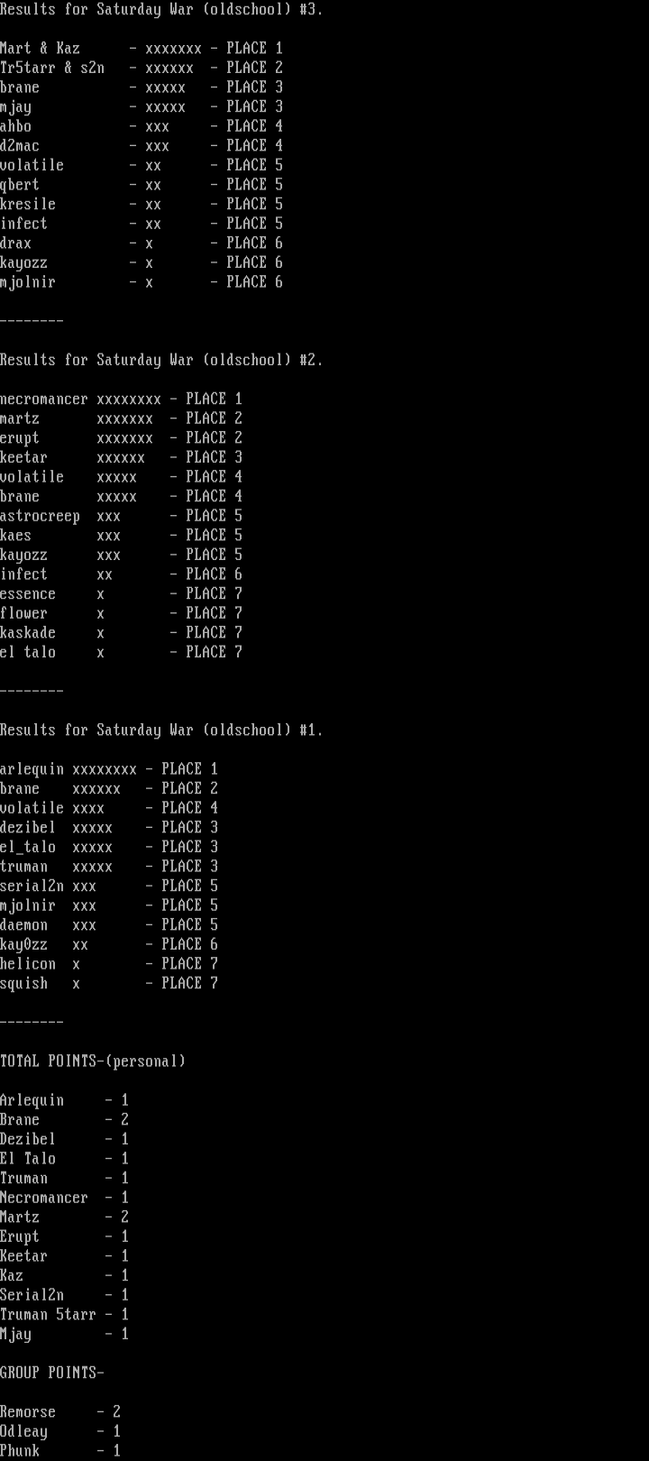 Results for Saturday War oldschool 3.