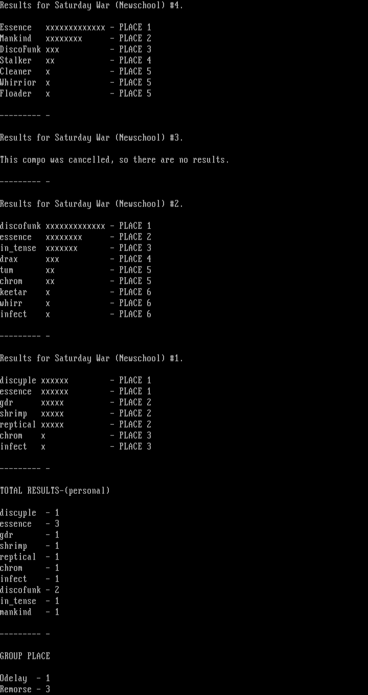 Results for Saturday War Newschool 2.